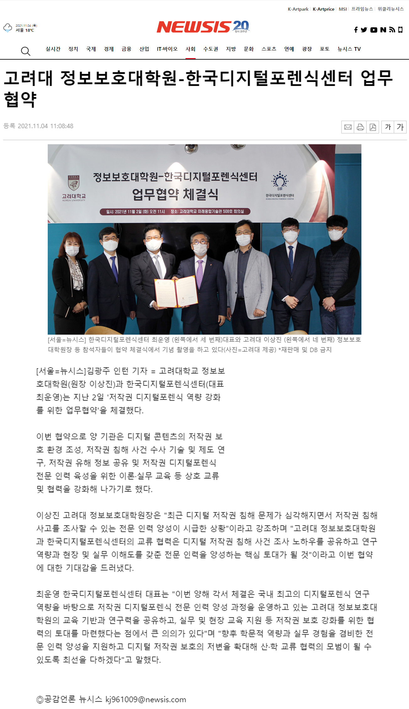 고려대 정보보호대학원-한국디지털포렌식센터 업무협약 - 뉴시스 한국디지털포렌식센터 2021-11-04 조회 2813 다음글 고려대 정보보호대학원, 한국디지털포렌식센터와 저작권 디지털포렌식 역량 강화 위한 업무협약 체결 - 스마트경제 이전글 케이에이치윈-한국디지털포렌식센터, \'디지털포렌식 기술 협력\' 업무협약 체결 - 아이티비즈 목록으로