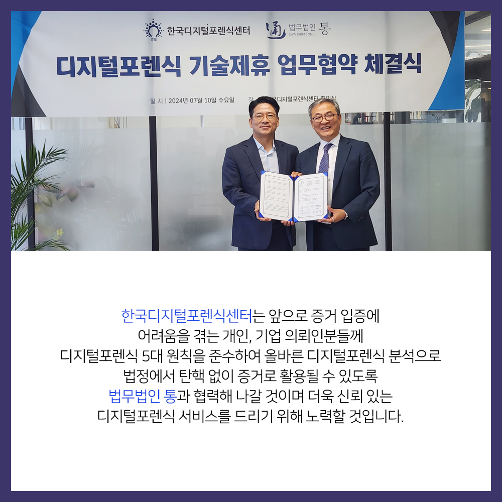 법무법인 통 - 한국디지털포렌식센터, 디지털포렌식 업무제휴(MOU) 협약