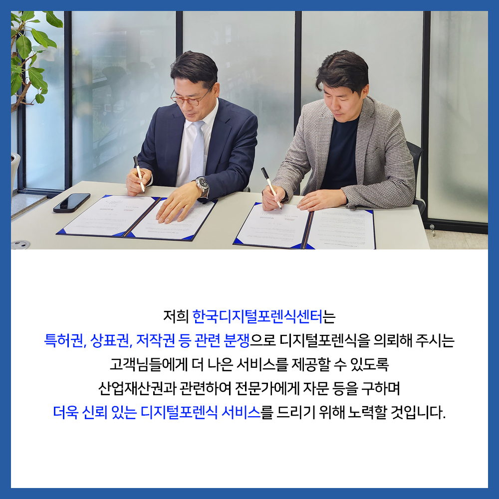 저희 한국디지털포렌식센터는 특허권, 상표권, 저작권 등 관련 분쟁으로 디지털포렌식을 의뢰해 주시는 고객님들에게 더 나은 서비스를 제공할 수 있도록